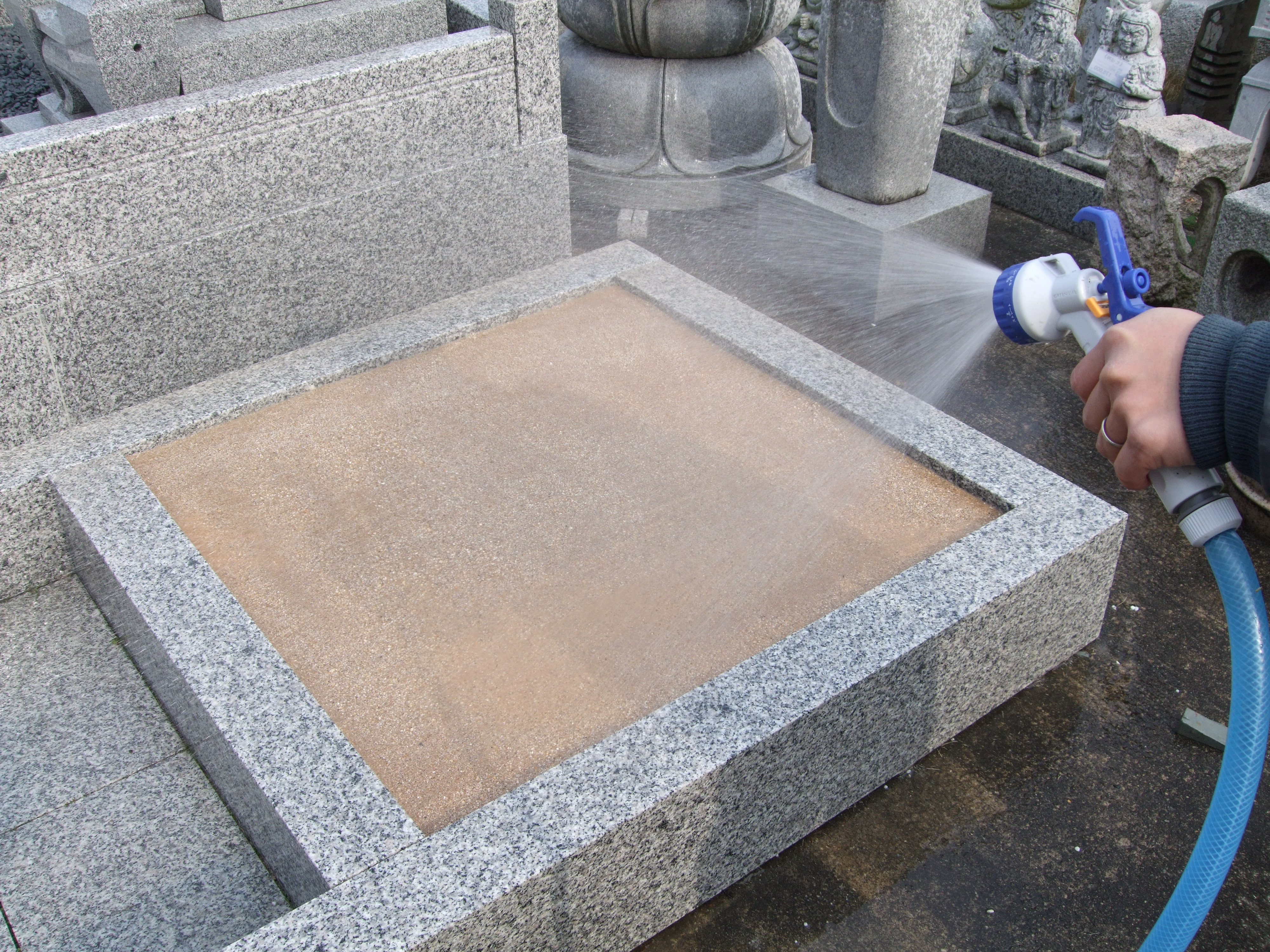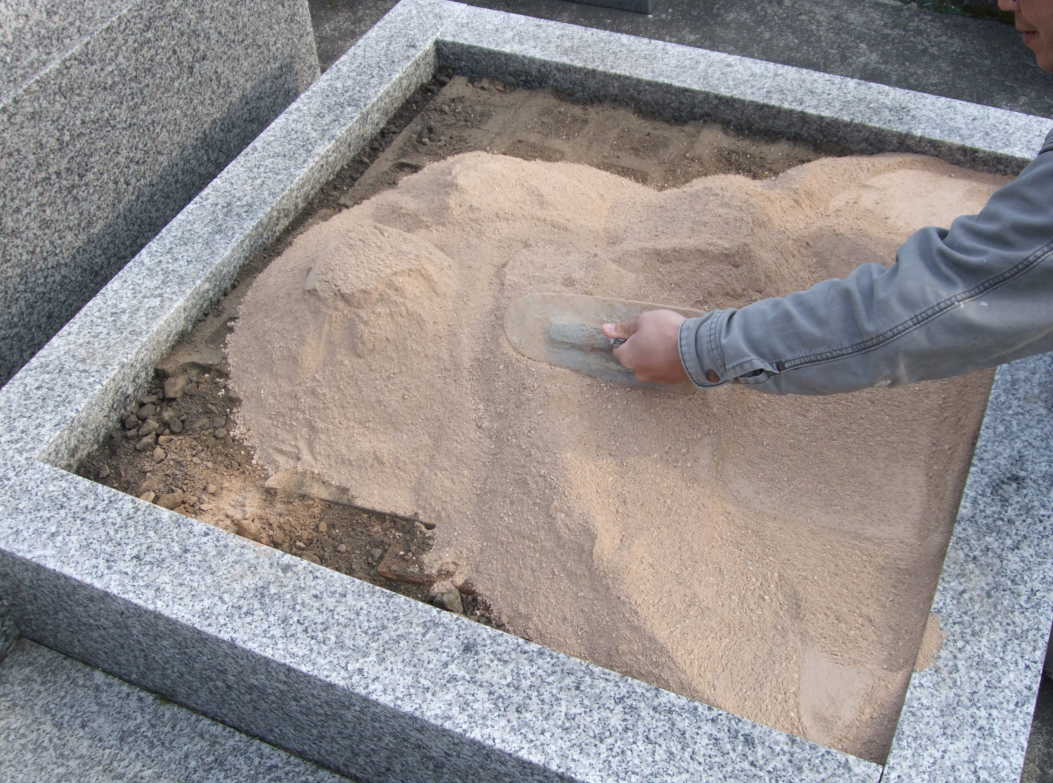 当社は、納骨室こそが本来もっとも清潔清浄な聖地でなければならないと考え、通気性と透水性に優れた全呼吸型納骨室を施工しています。納骨室に水と空気を取り込め、墓地がすこやかに呼吸できる構造に仕上げます。