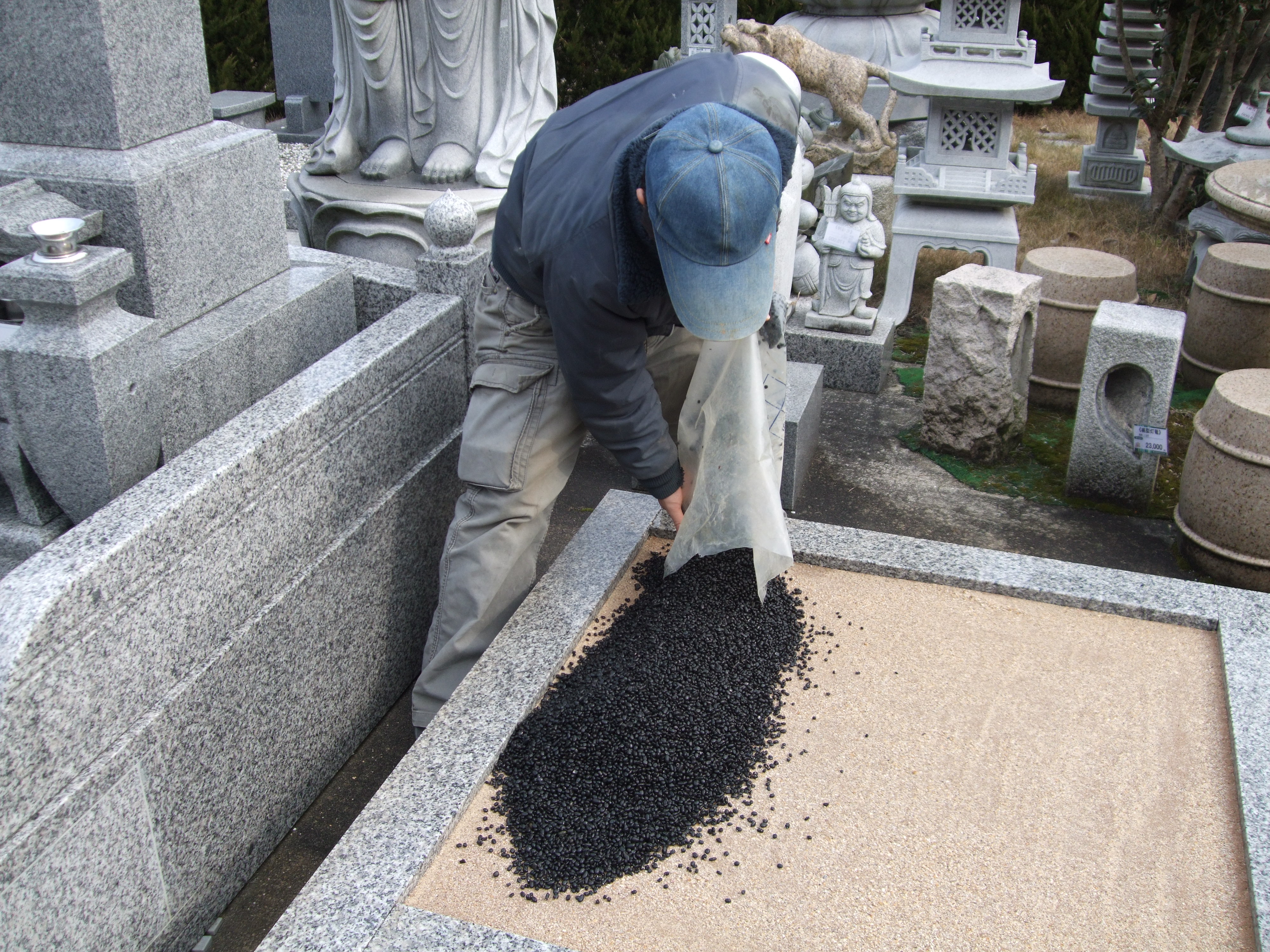 墓地表面の防草対策として、従来はポリピロピレン製の防草シート工を採用していましたが、5年~10年が経過すると、シート自体が腐食したり、シートの網目から雑草が出てくるケースもあり、雑草を完全に抑えることができませんでした。