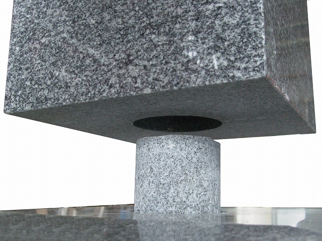 墓石の仏石と上台石の間、上台石と下台石の間の2箇所に弊社独自の耐震柱『芯石』を埋め込みます。いったん墓石を解体して工場に持ち帰り加工をします
