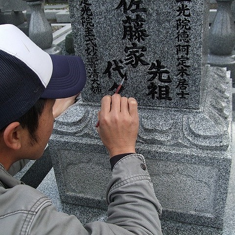 墓石の彫刻文字を着色し化粧直しすることを「墨入れ」といいます。
